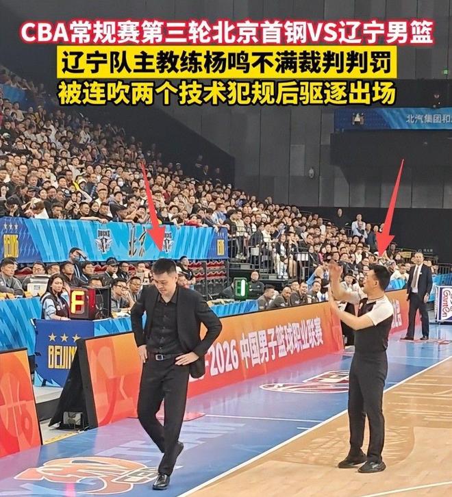 京辽大战!杨鸣情绪失控被驱逐,侮辱裁判细节曝光,深夜发文硬刚