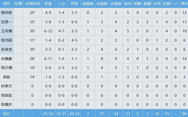 浙江队数据如下: