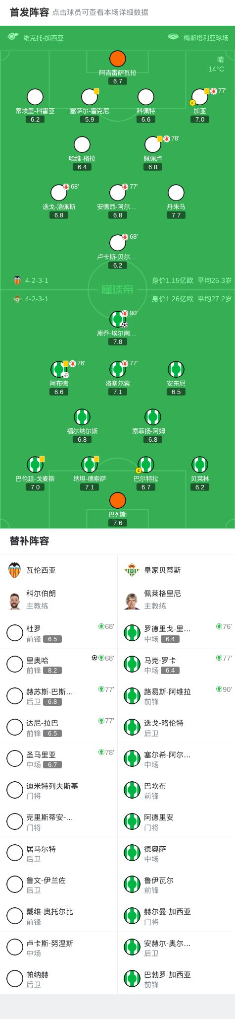 第82分钟,角球被顶到弧顶,里奥哈停球推射破门扳平比分,瓦伦西亚1-1