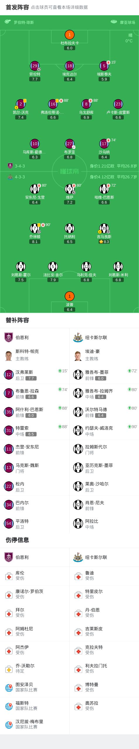 北京时间12月31日,英格兰足球超级联赛第19轮,伯恩利坐镇主场迎战纽卡斯尔联。上半场,乔林顿闪击得分。维萨随后为纽卡扩大领先优势,布罗亚头球摆渡,劳伦特扳回一城。下半场,伯恩利后场失误,吉马良斯吊射破门锁定胜局。全场比赛结束,纽卡3-1击败伯恩利,送给对手十轮不胜。