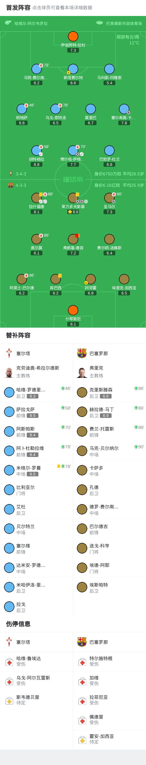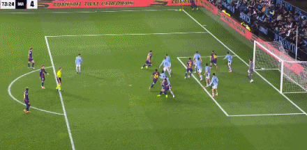 第73分钟,帽子戏法!拉什福德角球助攻莱万头球后蹭入网,塞尔塔2-4巴萨