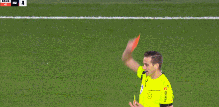 第90+4分钟,德容抢球放倒阿斯帕斯染黄,累计两黄变一红被罚下