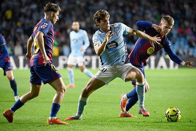 上半场第37分钟,莱万多夫斯基门前抢点破门,完成梅开二度,第43分钟,塞尔塔由伊格莱西亚斯远射破门再次扳平比分。半场补时阶段,亚马尔推射破门,帮助巴塞罗那再次领先。